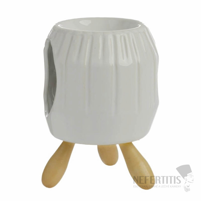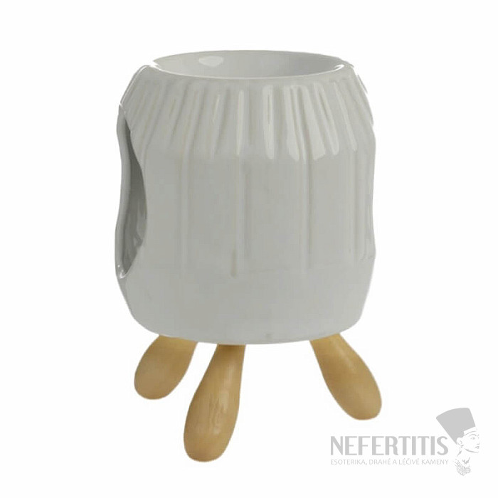 Keramická aroma lampa Bílý oktagon zaujme výrazným osmihranným tvarem a jemně vroubkovaným povrchem, který dodává designu strukturu a hloubku. Tři stabilní nožky lampu elegantně nadzvedávají a podtrhují její moderní architektonický charakter.