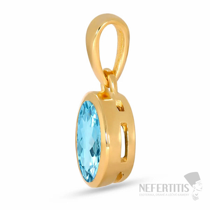 Tento elegantní šperk je vyroben z pravého stříbra 925/1000, které je potaženo vrstvou 14k zlata pro teplý a luxusní vzhled. Dominantou přívěsku je přírodní bílý topaz o velikosti přibližně 8 mm, vybroušený do klasického oválného tvaru s jemným facetovým brusem, který podtrhuje jeho brilantní čirost a jiskru.