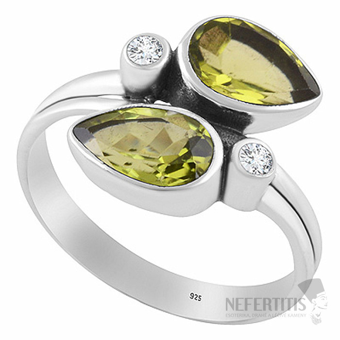 • Luxusní stříbrný prsten s olivínem a zirkony