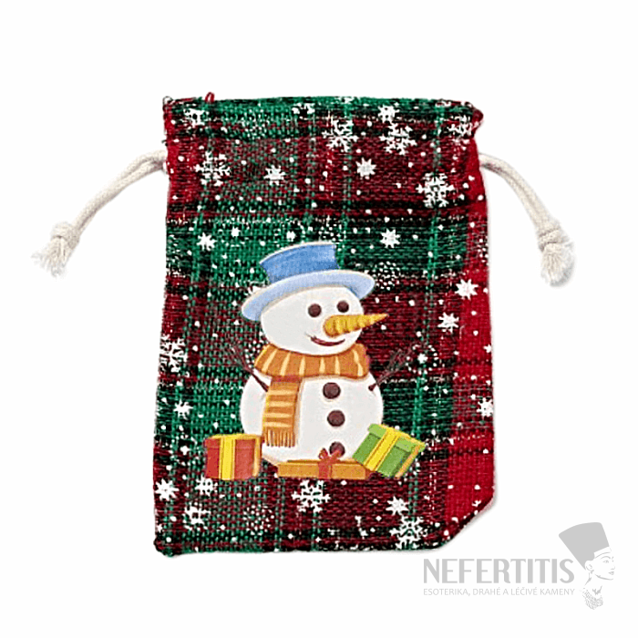 Jutový tartanový sáček Sněhulák se stahovací šňůrkou pro úschovu drobných cenností, kamínků, šperků a k atraktivnímu zabalení a dárků pro ty, které máte rádi. Právě dárkové sáčky a váčky jsou snadnou a levnou alternativou dárkových krabiček. Dopřejte svým oblíbeným drobnostem, šperkům či kamínkům pohodlí a ochranu uvnitř tohoto sáčku. Ilustrativní vyobrazení.