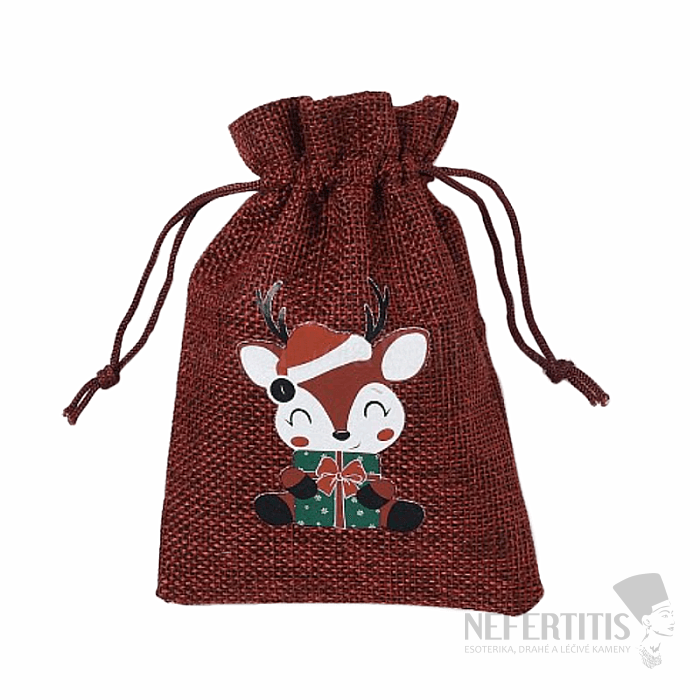 Jutový sáček Vánoční jelínek se stahovací šňůrkou pro úschovu drobných cenností, kamínků, šperků a k atraktivnímu zabalení a dárků pro ty, které máte rádi. Právě dárkové sáčky a váčky jsou snadnou a levnou alternativou dárkových krabiček. Dopřejte svým oblíbeným drobnostem, šperkům či kamínkům pohodlí a ochranu uvnitř tohoto sáčku. Ilustrativní vyobrazení.