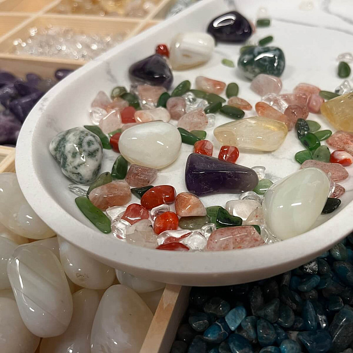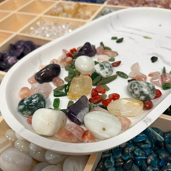 Každý kámen můžete použít i individuálně, nebo celou sadu položit k sobě jako harmonizující kompozici, která přenese do prostoru jemné světlo zimních svátků. Můžete si vybrat jeden kámen a nosit jej u sebe jako talisman po celý následující rok.