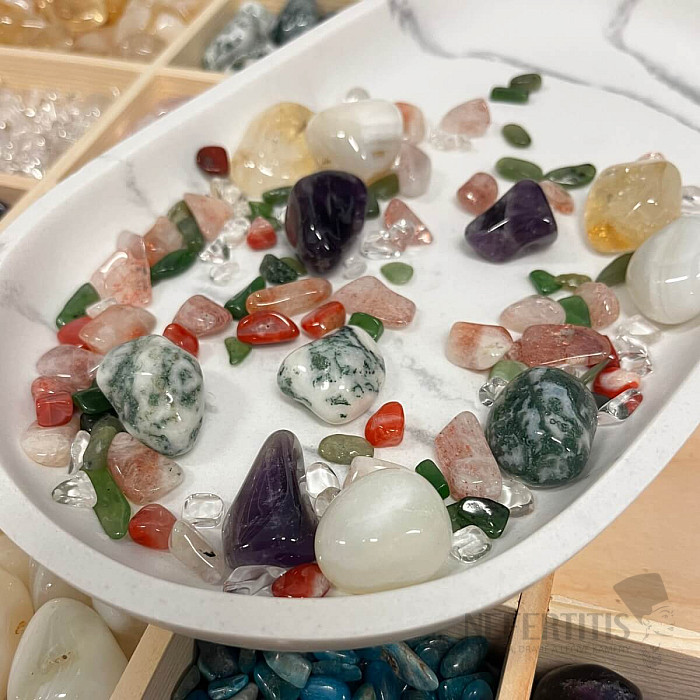 Objevte kouzlo zimní atmosféry s jedinečnou směsí Vánoční drahokamy By Nefertitis. Tato harmonická sada osmi druhů přírodních kamenů propojuje energii Vánoc, světla, klidu a radosti. Drahokamy slouží jako krásná dekorace ke svíčkám, na vánoční stůl, k betlému, k větvičkám nebo jako detail k fotografiím a dárkovému balení. Kameny jsou v bavlněném sáčku s nápisem a logem Nefertitis. Ilustrativní vyobrazení - každý sáček má originální obsah přírodních kamenů, ale v každém najdete stejný počet velkých kamenů, jako je na obrázku.