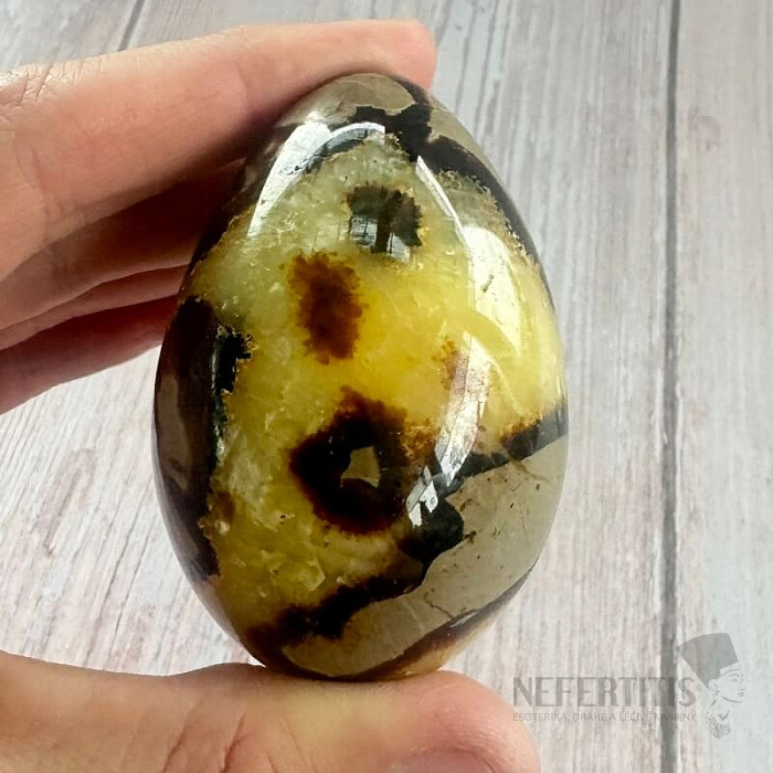 Upozornění: kámen není dokonale ohlazený, nehtem se někdy dají nahmatat vlasové trhlinky, což je vlastností septárie. Z tohoto důvodu nemohou být předmětem případné reklamace.