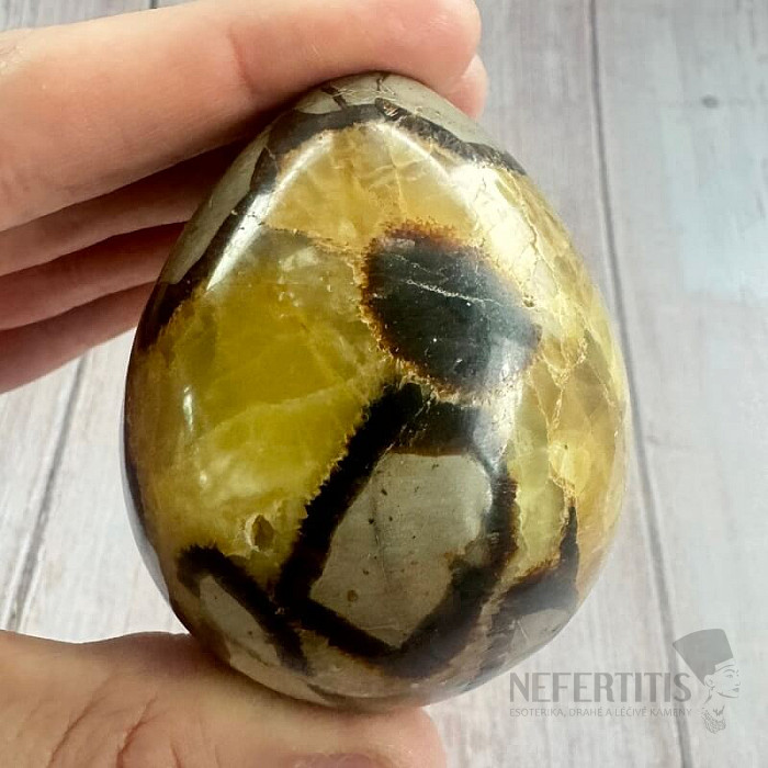Upozornění: kámen není dokonale ohlazený, nehtem se někdy dají nahmatat vlasové trhlinky, což je vlastností septárie. Z tohoto důvodu nemohou být předmětem případné reklamace.