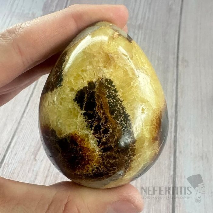 Upozornění: kámen není dokonale ohlazený, nehtem se někdy dají nahmatat vlasové trhlinky, což je vlastností septárie. Z tohoto důvodu nemohou být předmětem případné reklamace.