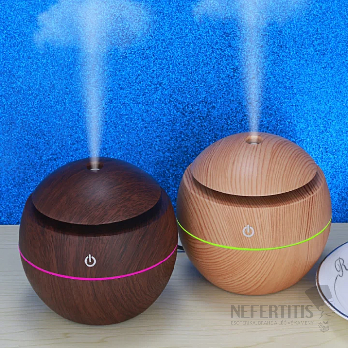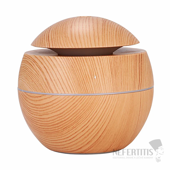 Kulatý tvar s jemnou strukturou světlého dřeva působí moderně a čistě. Difuzér se hodí do ložnice, pracovny i obývacího pokoje. Světelné efekty mění barvy a vytvářejí příjemnou atmosféru.