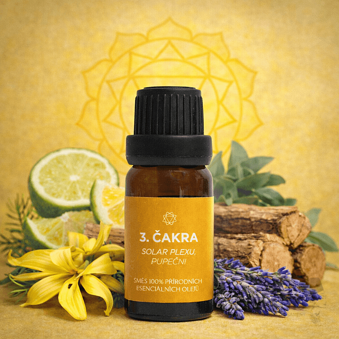 Z naší kouzelné dílny Nefertitis: směs 100% přírodních esenciálních olejů z ylang-ylang, cedrového dřeva, bergamotu, a levandule pro 3. čakru. Vykouzlete si příjemné chvíle pro odpočinek, relaxaci a harmonizaci čakry solar plexu.