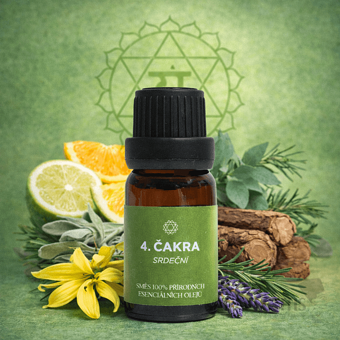 Z naší kouzelné dílny Nefertitis: směs 100% přírodních esenciálních olejů z pomeranče, bergamotu, šalvěje rozmarýny, cedru a eukalyptu pro 4. čakru. Směs je navržena tak, aby podporovala lásku, soucit, harmonii a vnitřní klid. Obsahuje oleje, které s touto čakrou energeticky souzní.