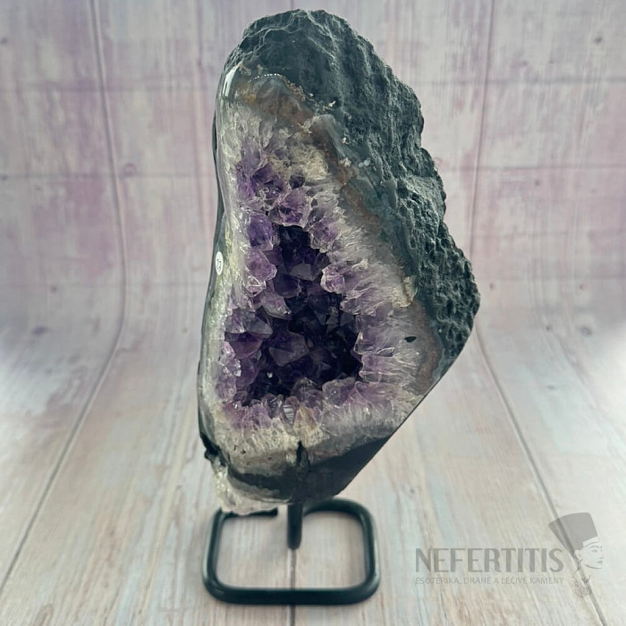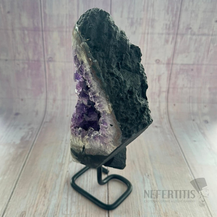 Ametystová drůza kvality A na kovovém stojánku. Kupujete přímo vyobrazený kus. Stojánek může barvit, doporučejeme tedy pod něj dát podložku, a nepokládat ho přímo na nábytek. Země původu: Uruguay Ametyst je po… více »