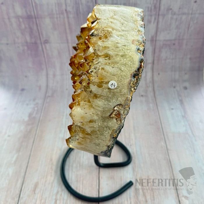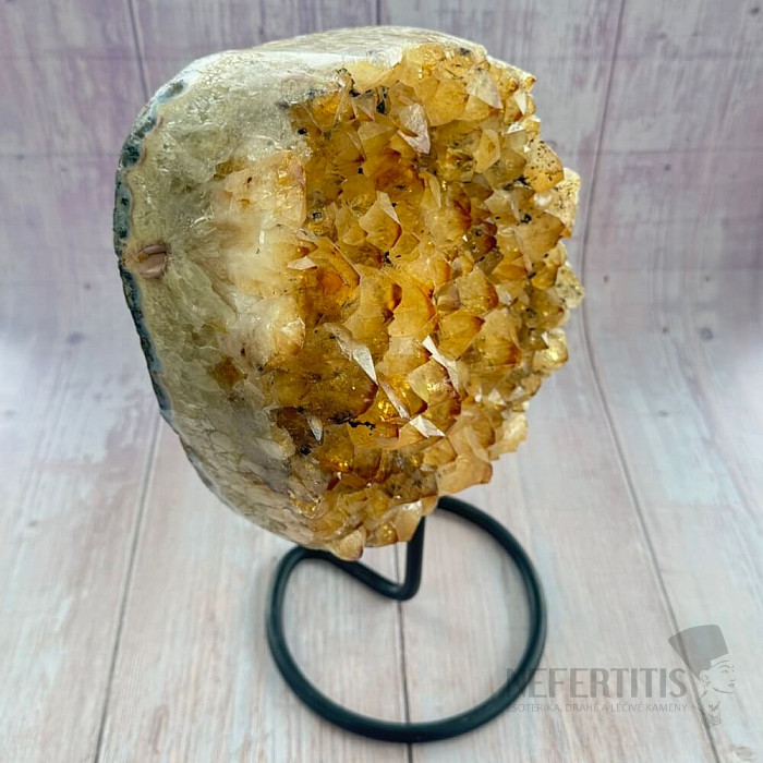 Leštěná drůza z citrínu (přepalovaného ametystu) na kovovém stojánku, A kvalita. Takto opracované drůzy jsou velmi vzácné. Kupujete přímo vyobrazený kus. Země původu: Uruguay Citrín je tradičním kamenem - symbolem… více »