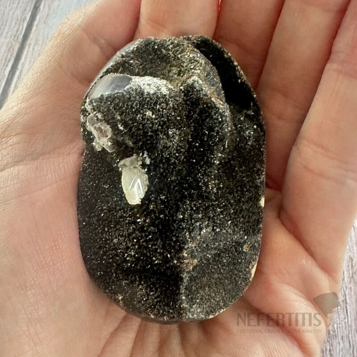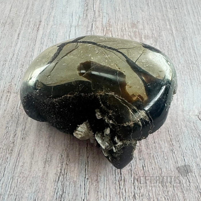 Drúza septárie, polovina dračího vejce, "oblázek". Země původu: Madagaskar. Kupujete přímo vyobrazenou septárii. Charakteristika: uzemnění – uklidnění – komunikace – čakry: kořenová, sakrální a solar plexu - Feng Shui… více »