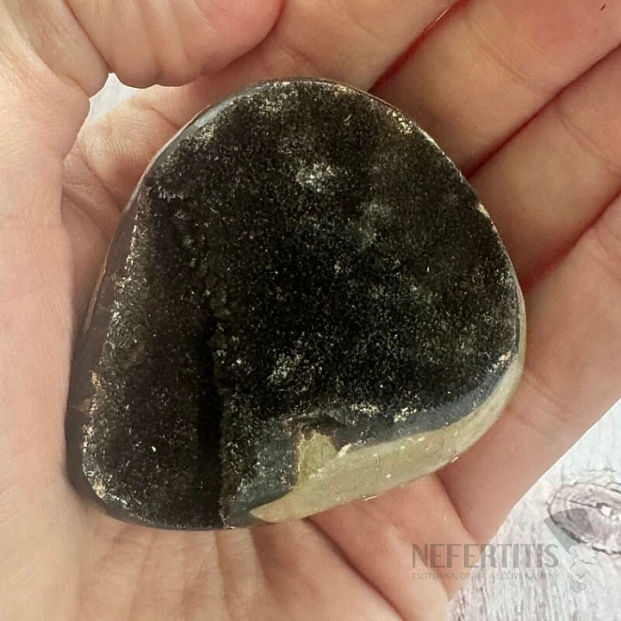 Drúza septárie, polovina dračího vejce, "oblázek". Země původu: Madagaskar. Kupujete přímo vyobrazenou septárii. Charakteristika: uzemnění – uklidnění – komunikace – čakry: kořenová, sakrální a solar plexu - Feng Shui… více »