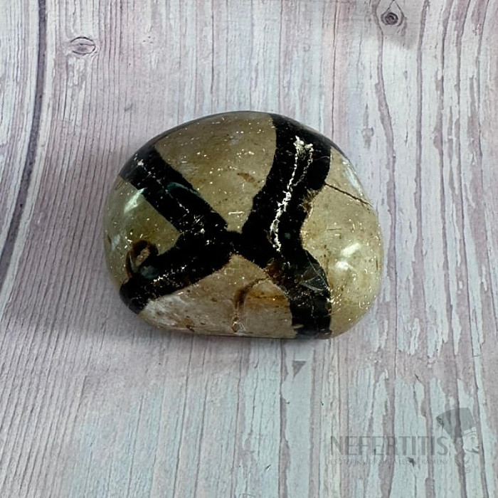 Drúza septárie, polovina dračího vejce, "oblázek". Země původu: Madagaskar. Kupujete přímo vyobrazenou septárii. Charakteristika: uzemnění – uklidnění – komunikace – čakry: kořenová, sakrální a solar plexu - Feng Shui… více »