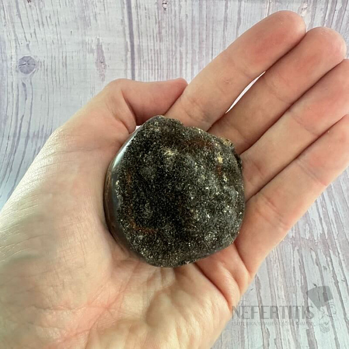 Drúza septárie, polovina dračího vejce, "oblázek". Země původu: Madagaskar. Kupujete přímo vyobrazenou septárii. Charakteristika: uzemnění – uklidnění – komunikace – čakry: kořenová, sakrální a solar plexu - Feng Shui… více »