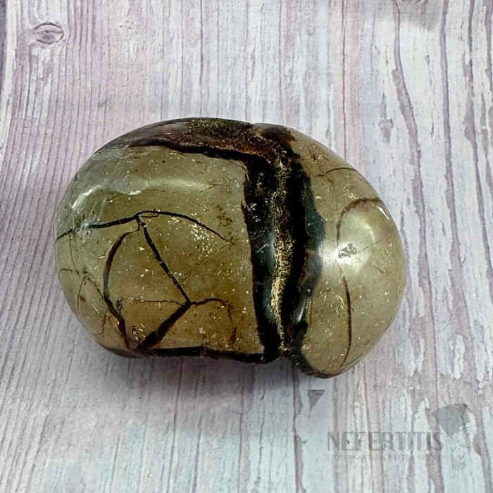 Drúza septárie, polovina dračího vejce, "oblázek". Země původu: Madagaskar. Kupujete přímo vyobrazenou septárii. Charakteristika: uzemnění – uklidnění – komunikace – čakry: kořenová, sakrální a solar plexu - Feng Shui… více »