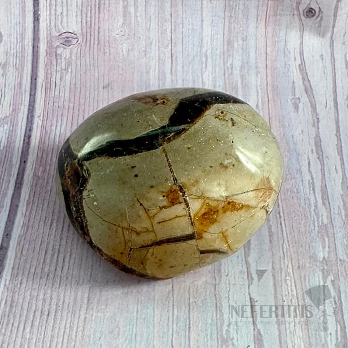 Drúza septárie, polovina dračího vejce, "oblázek". Země původu: Madagaskar. Kupujete přímo vyobrazenou septárii. Charakteristika: uzemnění – uklidnění – komunikace – čakry: kořenová, sakrální a solar plexu - Feng Shui… více »
