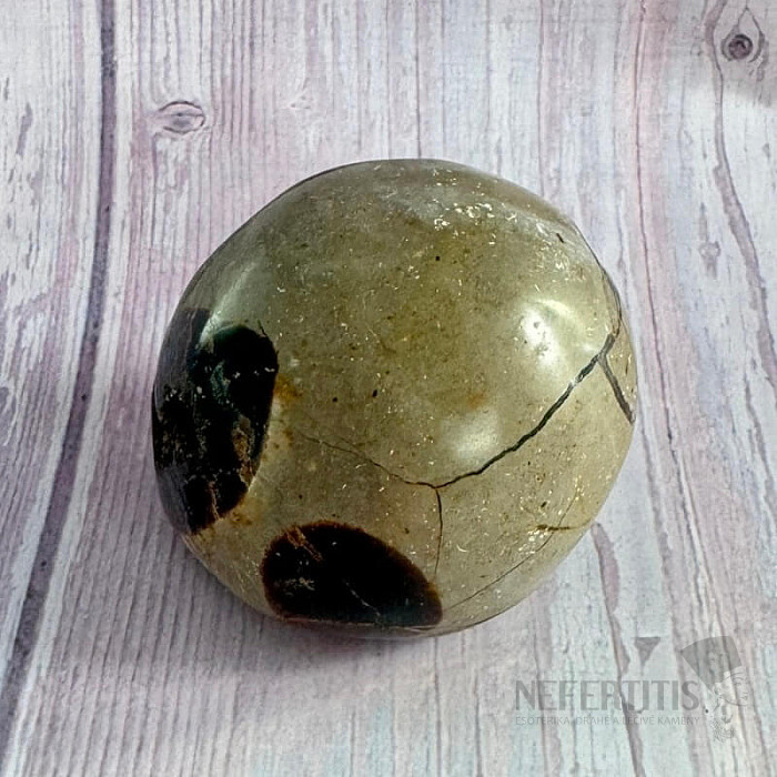 Drúza septárie, polovina dračího vejce, "oblázek". Země původu: Madagaskar. Kupujete přímo vyobrazenou septárii. Charakteristika: uzemnění – uklidnění – komunikace – čakry: kořenová, sakrální a solar plexu - Feng Shui… více »