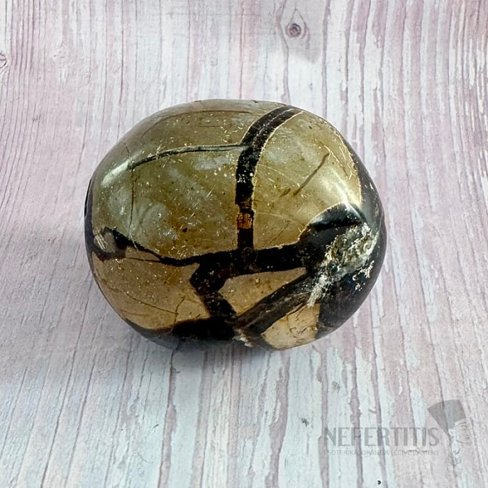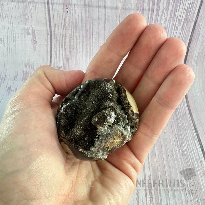 Drúza septárie, polovina dračího vejce, "oblázek". Země původu: Madagaskar. Kupujete přímo vyobrazenou septárii. Charakteristika: uzemnění – uklidnění – komunikace – čakry: kořenová, sakrální a solar plexu - Feng Shui… více »