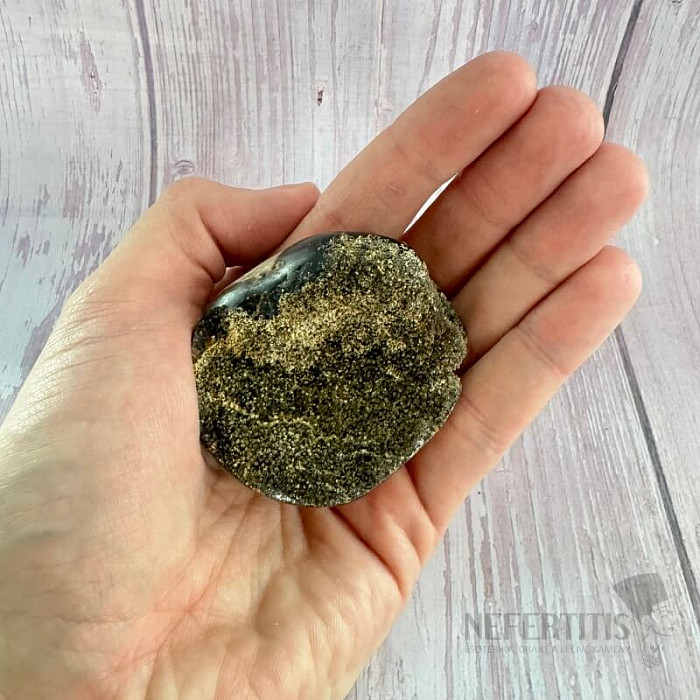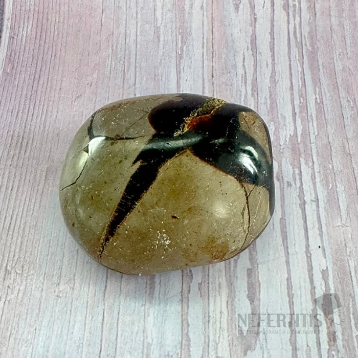 Drúza septárie, polovina dračího vejce, "oblázek". Země původu: Madagaskar. Kupujete přímo vyobrazenou septárii. Charakteristika: uzemnění – uklidnění – komunikace – čakry: kořenová, sakrální a solar plexu - Feng Shui… více »