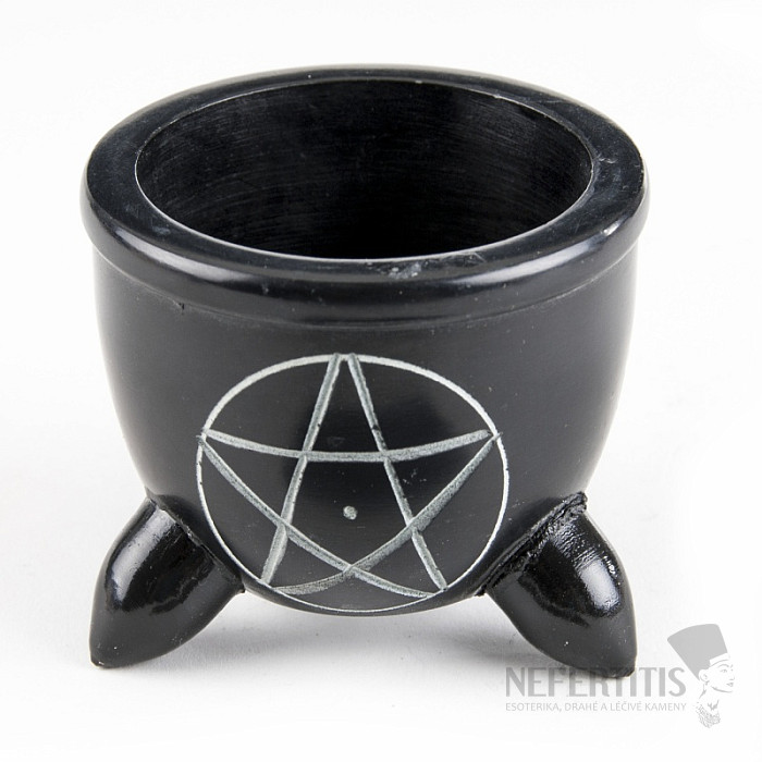 Kadidelnice je vyrobena z přírodního mastku, kamene odolného vůči vysokým teplotám, a proto je ideální pro pálení vykuřovadel, pryskyřic, bylin či kužílků. Její povrch je hladce leštěný a zdobený výrazným rytím pentaklu, který dodává rituálům i prostoru magickou energii.