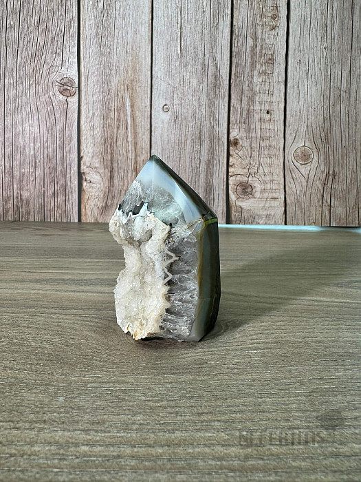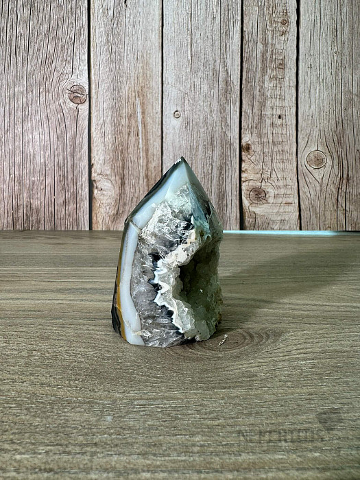 Sbírková špice - obelisk z brazilského achátu s geodkovým okénkem. Kupujete přímo vyobrazený kus.