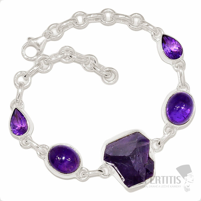 Velikost náramku: délka náramku je cca 16 cm, lze zapnout až na 19,5 cm. Velikost ametystů je cca 0,9 - 1,6 cm.
