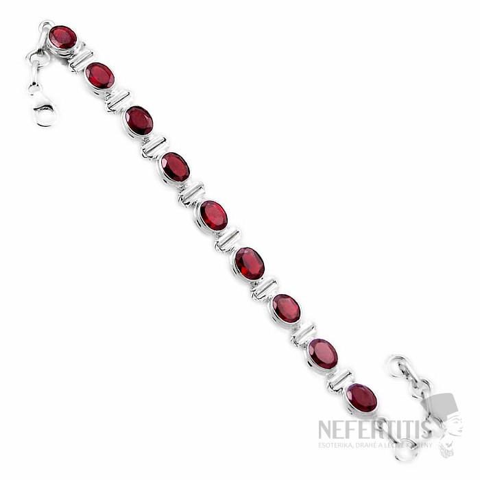 Náramek z broušených granátů ve stříbře. Nechte se okouzlit sytě rudou barvou granátu. Ag 925. Kupujete přímo vyobrazený šperk.