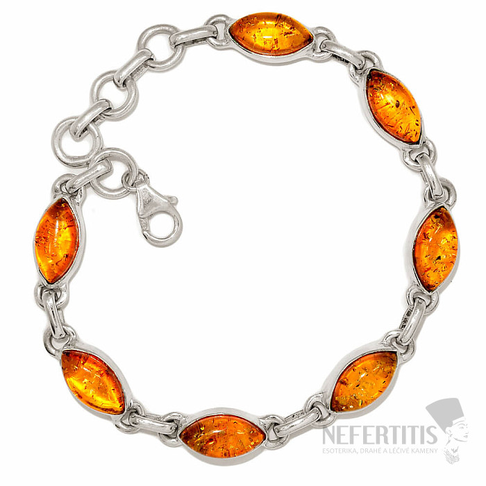Unikátní stříbrný náramek z jantaru. Velmi optimistický a dobrou náladu již od pohledu navozující šperk. Ag 925. Kupujete přímo vyobrazený šperk.