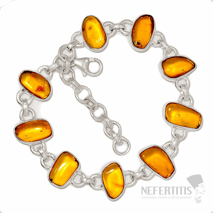 Unikátní stříbrný náramek z baltského jantaru. Velmi optimistický a dobrou náladu již od pohledu navozující šperk. Ag 925. Kupujete přímo vyobrazený šperk.