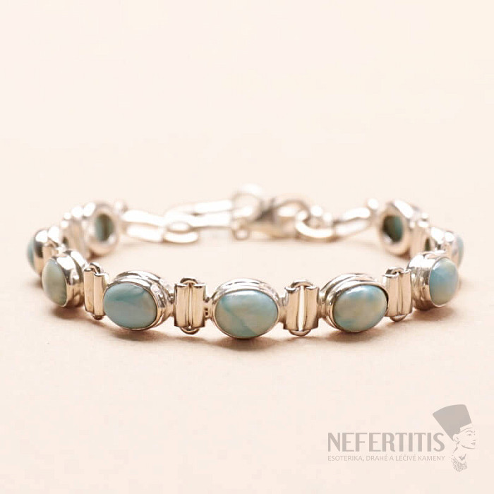 Výjimečný náramek ze stříbra s kabošony vzácného larimaru. Výrazný šperk, který každého okouzlí a nikdo jej na vaší ruce nepřehlédne. Ag 925. Kupujete přímo vyobrazený šperk.