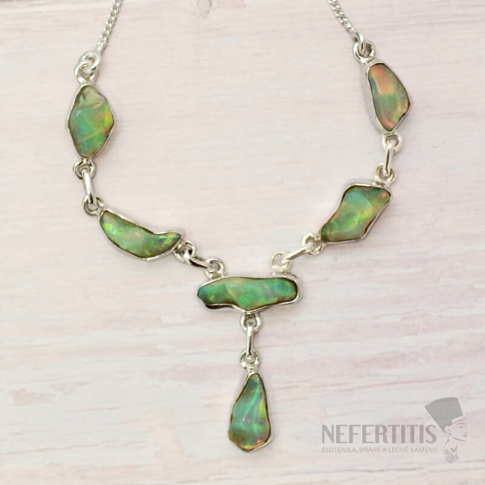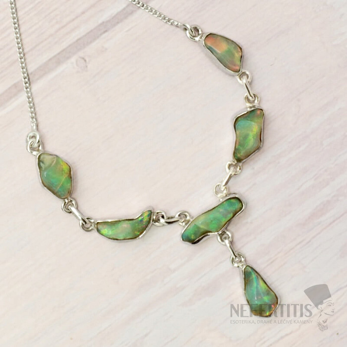 Opál etiopský surový náhrdelník stříbro Ag 925 N70