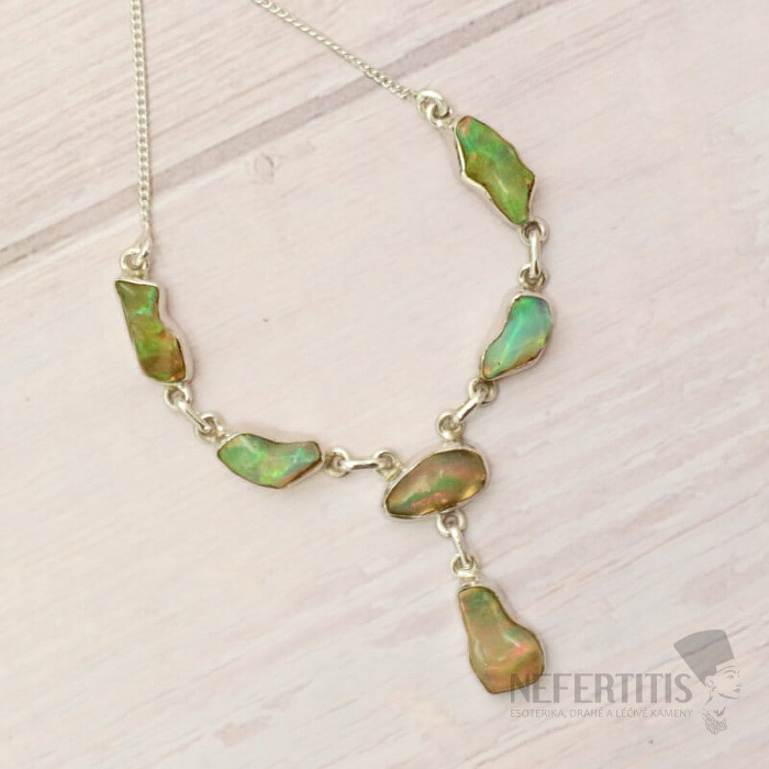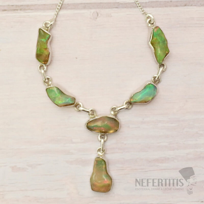 Opál etiopský surový náhrdelník stříbro Ag 925 N77