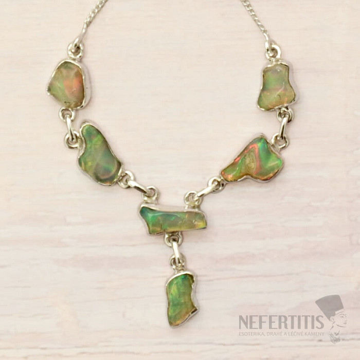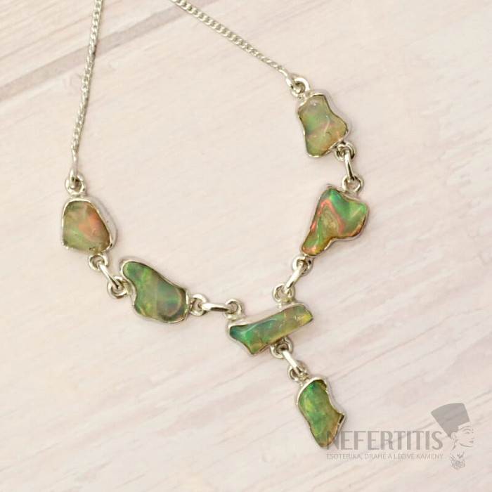 Opál etiopský surový náhrdelník stříbro Ag 925 N83