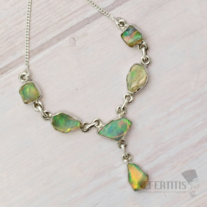 Opál etiopský surový náhrdelník stříbro Ag 925 N86