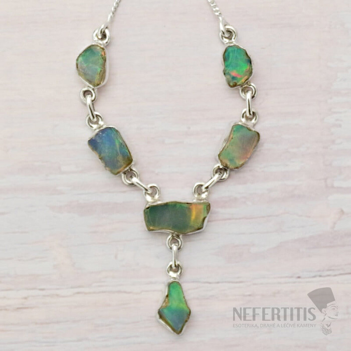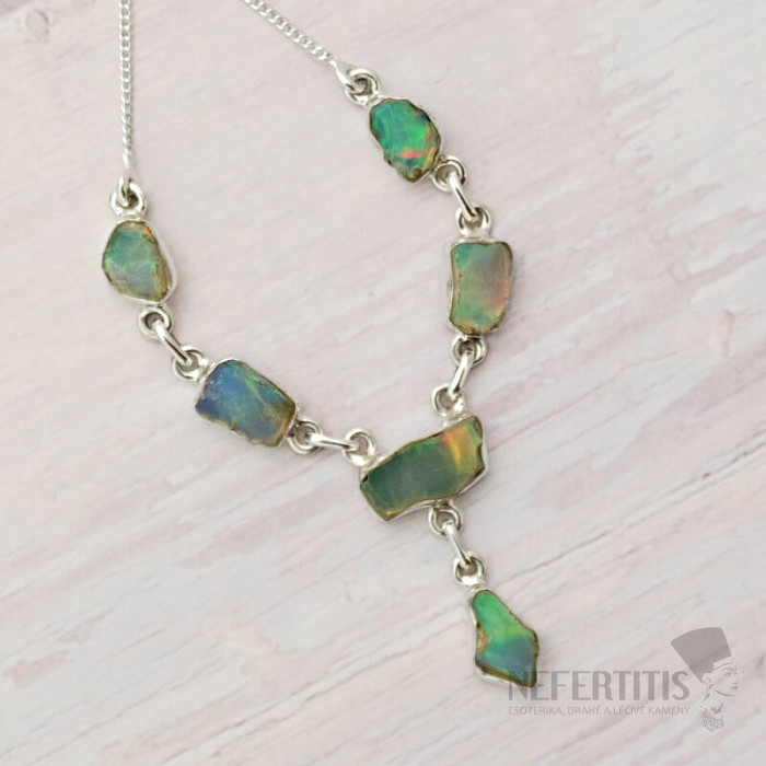 Opál etiopský surový náhrdelník stříbro Ag 925 N87
