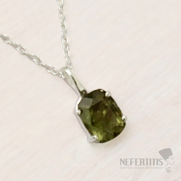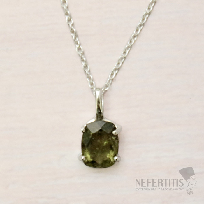 Vltavín broušený náhrdelník stříbro Ag 925 MIX1