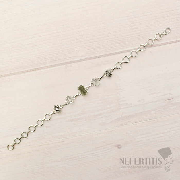 Atraktivní stříbrný náramek s vltavíny, Herkimer diamanty a meteority Campo del Cielo. Ag 925. Kupujete přímo vyobrazený šperk.