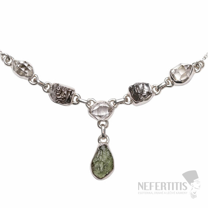 Vltavín, Herkimer diamant a meteorit náhrdelník stříbro Ag 925 N54