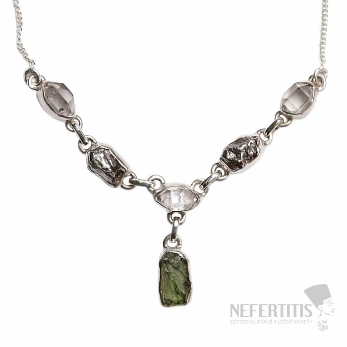 Vltavín, Herkimer diamant a meteorit náhrdelník stříbro Ag 925 N61