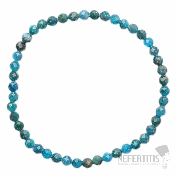Velmi elegantní a třpytivý náramek z fasetovaných korálků nádherně modrého apatitu v prvotřídní AA kvalitě pomáhá překonat apatii a negativitu, dodává motivaci a sebevědomí k dosažení cílů. Svému nositeli pomáhá rozvinout kreativitu, dává vnitřní sílu a čistí mentální bloky. Kombinace různých odstínů modré barvy spolu s třpytem světla na stovkách broušených plošek kvalitních korálků apatitu činí náramek nepřehlédnutelným a velmi dekorativním. Okouzlující šperk, vhodný pro každou příležitost. Modrá barva apatitu znamená začátek nového života a potitivní emoce. Přináší důvěru, víru, trpělivost a sebeúctu. Nádherný a vzácný šperk, který vnáší do života radost a optimismus díky svým nádherným barvám, připomínajícím modrou barvu mořské hladiny. velmi dekorativní a nepřehlédnutelný. Broušené korálky apatitu o velikosti cca 4,5 mm jsou navlečeny na silné nylonové gumičce modré barvy.