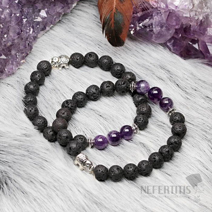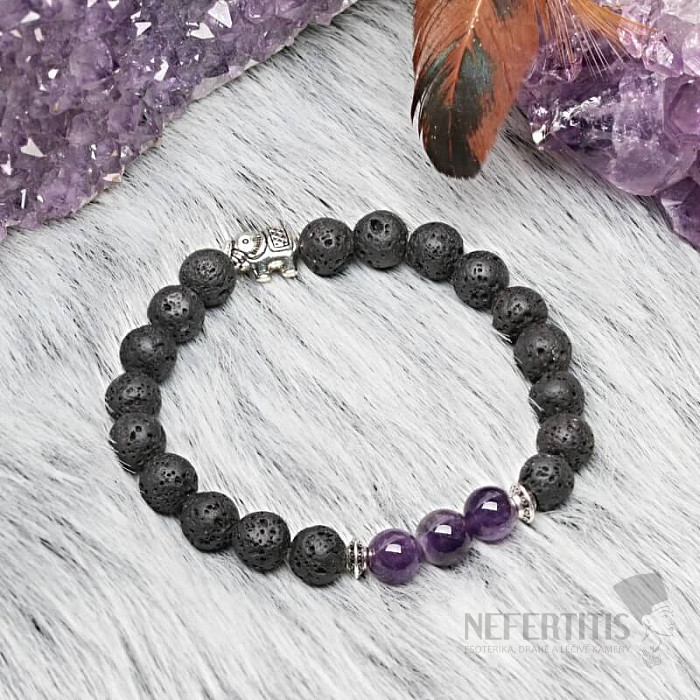 Lávový kámen a ametyst náramek se slonem