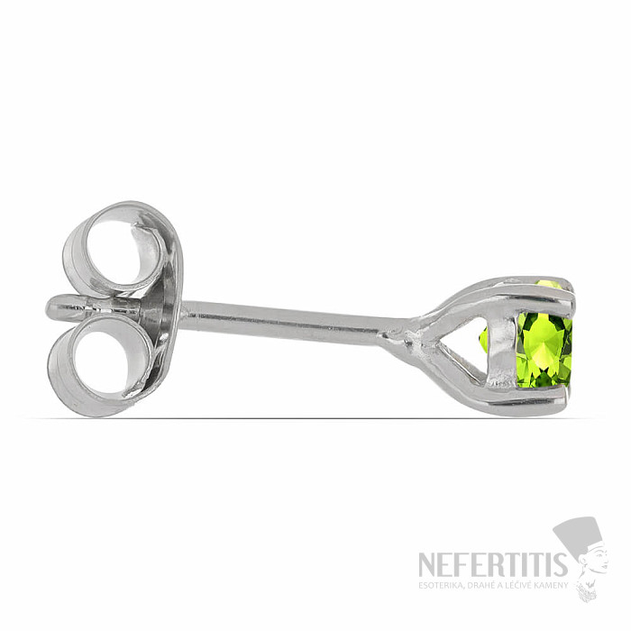 Exkluzivní stříbrné náušnice z designové řady Nefertitis Collection s přírodními broušenými olivíny. Kameny jsou zasazeny do rhodiovaného stříbra, jehož povrch připomíná vzhled bílého zlata, náušnice tak působí luxusním dojmem. Rhodiované stříbro je méně náchylné k oxidaci (černání) povrchu. Krásný třpytivý šperk s čirými kameny klenotnické kvality, jejichž krása je zdůrazněna dopadem světla na jednotlivé plošky výbrusu, vhodný pro různé příležitosti. Rhodiované stříbro Ag 925/1000. Uvedená váha je celého páru. Velikost olivínů 4 mm. Ilustrativní vyobrazení.