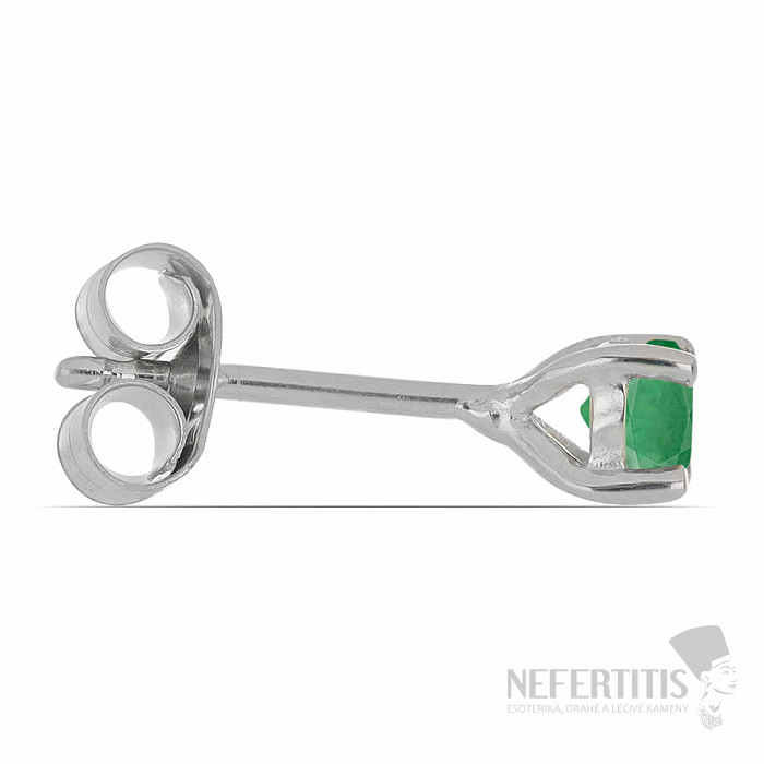 Exkluzivní stříbrné náušnice z designové řady Nefertitis Collection s broušenými přírodními smaragdy. Kameny jsou zasazeny do rhodiovaného stříbra, jehož povrch připomíná vzhled bílého zlata, náušnice tak působí luxusním dojmem. Rhodiované stříbro je méně náchylné k oxidaci (černání) povrchu. Krásný třpytivý šperk s čirým kamenem klenotnické kvality, jehož krása je zdůrazněna dopadem světla na jednotlivé plošky výbrusu, vhodný pro různé příležitosti. Uvedená váha je celého páru. Velikost smaragdů 4 mm. Ilustrativní vyobrazení.