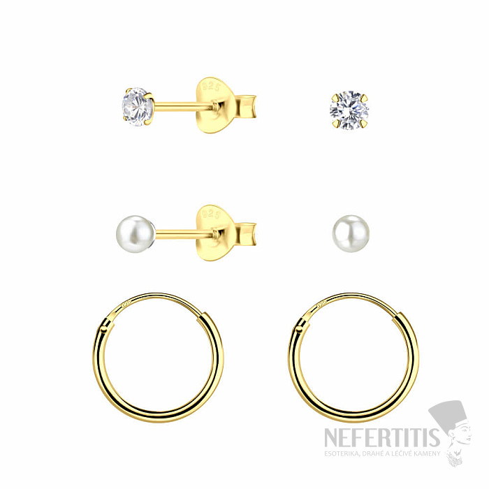 34073 Stříbrné náušnice pecky a kruhy pozlacené základní set