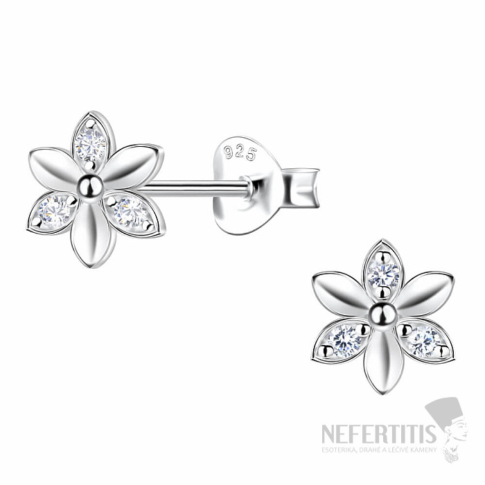 34360 Stříbrné náušnice pecky se zirkony KVĚTINA