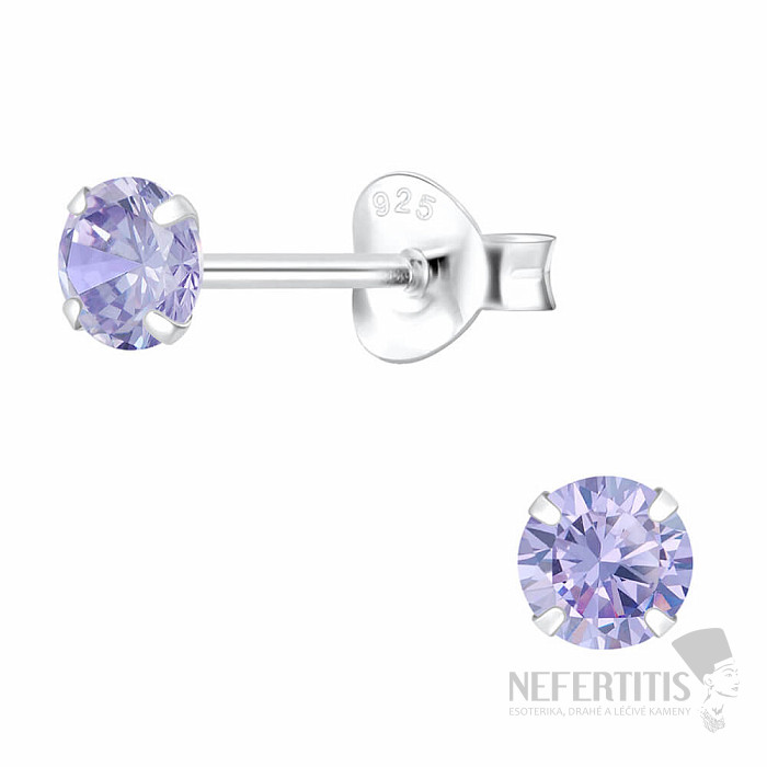 3788 Stříbrné náušnice pecky se zirkony 4mm LEVANDULE