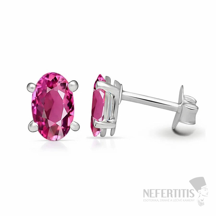 Nádherné stříbrné náušnice typu pecky s přírodním růžovým turmalínem potěší každou milovnici jemných, ale výrazných šperků. Jsou vyrobeny z pravého stříbra 925/1000.