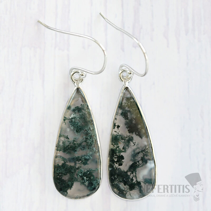 Nádherné stříbrné náušnice s mechovým achátem. Ag 925. Inkluze železa vytváří v achátu vzory připomínající mech nebo lišejník. Velké množství inkluzí činí tento šperk okouzlující a zcela nezaměnitelný. Uvedená váha je celého páru. Kupujete přímo vyobrazený pár.