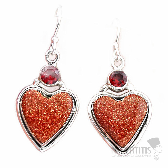 Stříbrné náušnice se slunečním avanturínem a broušeným granátem. Ag 925. Uvedená váha je celého páru. Kupujete přímo vyobrazený pár.